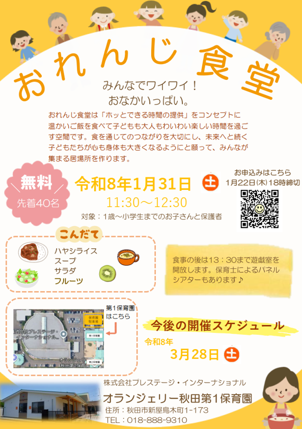 新年1回目の「おれんじ食堂」の開催日は1月31日(土)です✨